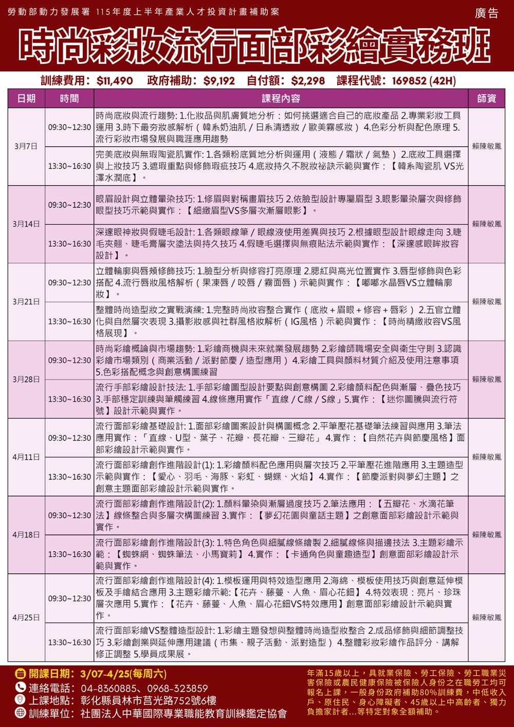 上課日期:3/07–4/25(每週六)9:30–16:30